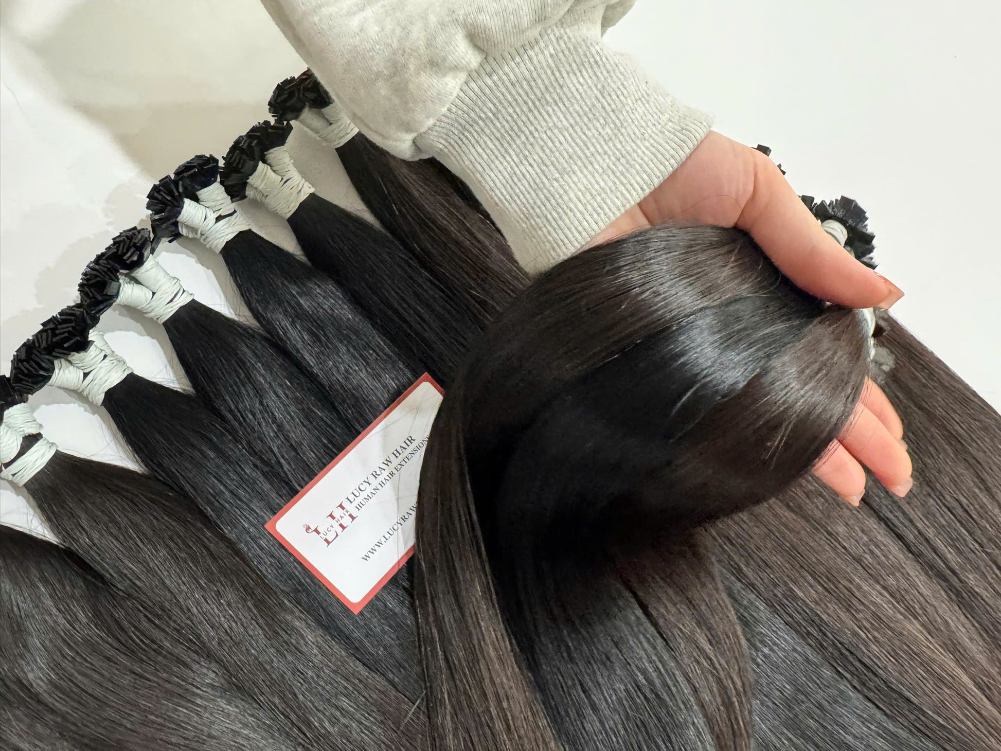 Flat Keratin Hair Extensions Natural Color Vietnamese Virgin Hair For Bleaching Best Seller